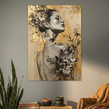 Abstracte Sepia Lotus Kunstwerk Art & Soul Creations