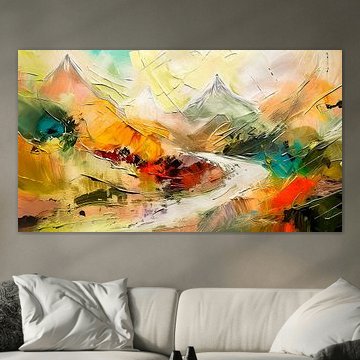 Modern Abstract: Uniek en Kleurrijk berglandschap Studio Pieternel