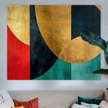 Gouden horizon met abstracte natuur in vloeiende lijnen Dutch Art Works
