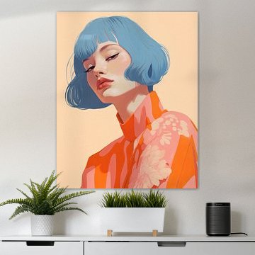 Modern geïllustreerd portret in blauw, wit en rood Carla Van Iersel