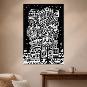 Digitale kunst, stadsgezicht in neon kleuren Bert Nijholt
