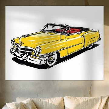 Retro geel muscle car achterkant pop art portret Ramy Salah Hefny