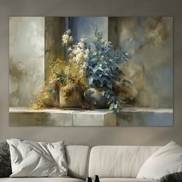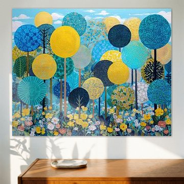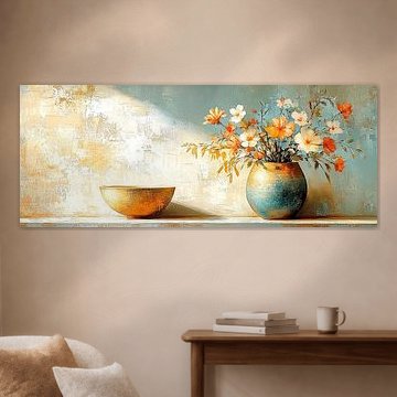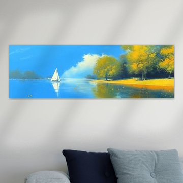 Zomerlandschap met meer, bloemen & -Bergen AidasignArt