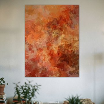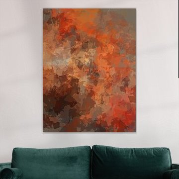 Japandi. Minimalistisch abstract landschap. Roestbruin, neonrood, beige Abstract Minimalist Art
