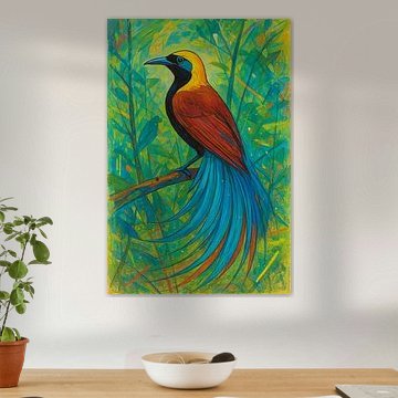 24. Een kleurrijk schilderij van een papegaaiduiker. van Johannes
