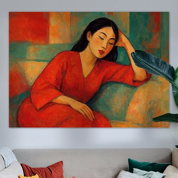 Schilderij van een Aziatische vrouw. van Johannes