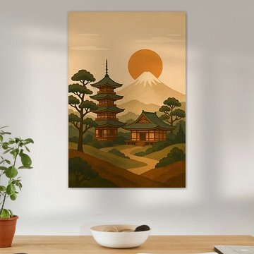 Japans berglandschap in Boho stijl illustratie. van Johannes