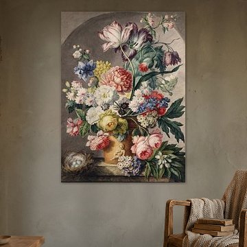 • Kleurrijk bloemstilleven in een vaas met takken