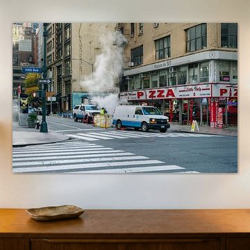 Stoomwolken boven de straten in New York
