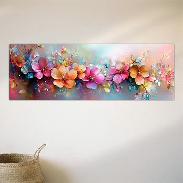 • Klantfoto: Panorama stilleven vaas en tak met bloesem van Digitale Schilderijen, als ArtFrame
