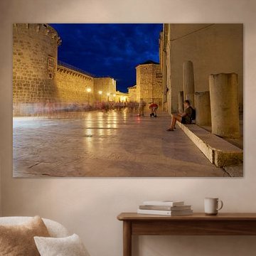 Parasols en ligstoelen op het strand van Krk in Kroatië