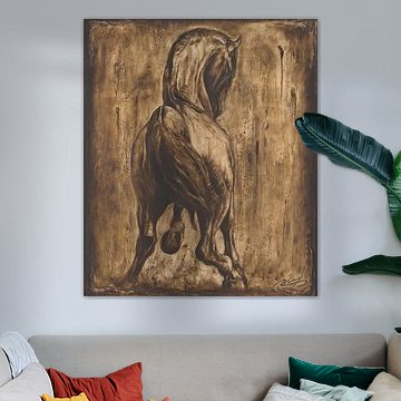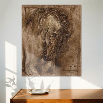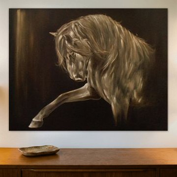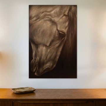 Bijvoorbeeld met pastel, potlood, houtskool sepia en olieverf. In olieverf maak ik zowel werken in realistische stijl maar ook expressiever werk. Ook maak ik abstract werk. Belangrijk vind ik dat het werk gaat leven en een gevoel uitstraalt. Een gevoel dat verder gaat dan een afbeelding, een bezieling. Bij mij staat het dier centraal en de “spirit” van het dier maakt het doek compleet, een mengeling van de ziel van het dier en mijn gevoelsbeleving.