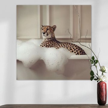 Cheetah in bad - Een grappige badkamerfoto