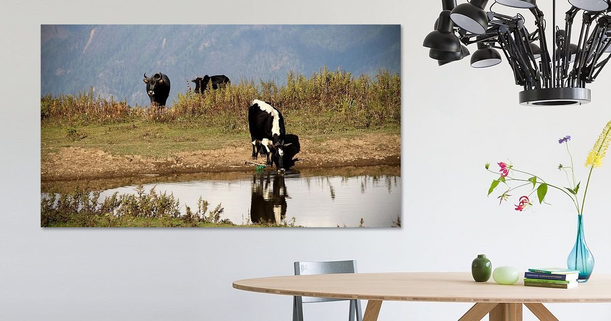 Canvas, aluminium, HD Metal, acrylglas en ingelijste werken worden stevig verpakt in plastic bubbelwrap en karton. Behang en posters worden in stevige kokers verzonden.