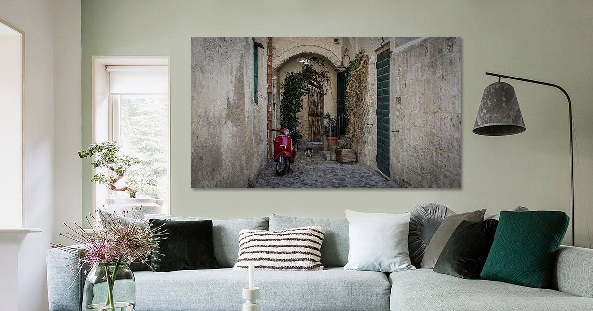 Canvas, aluminium, HD Metal, acrylglas en ingelijste werken worden stevig verpakt in plastic bubbelwrap en karton. Behang en posters worden in stevige kokers verzonden.