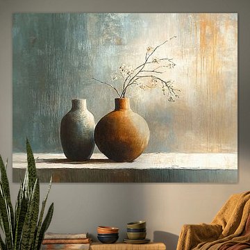 • Klantfoto: Rustieke Kommen | Golden Calm van Zen en Meer, op canvas