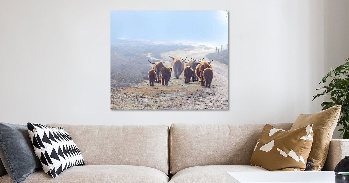 Canvas, aluminium, HD Metal, acrylglas en ingelijste werken worden stevig verpakt in plastic bubbelwrap en karton. Behang en posters worden in stevige kokers verzonden.
