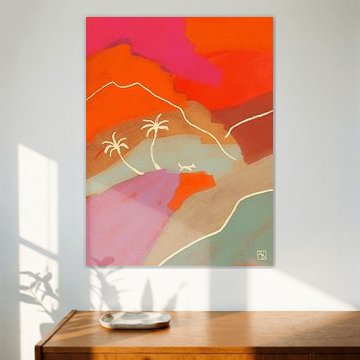 Roze, geel en terra landschap. Modern abstract expressionisme. van Dina Dankers