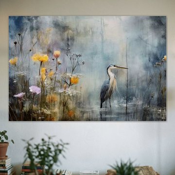 Modern landschap in pastelkleuren met reiger van Studio Allee
