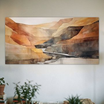 Landschapsschilderij Sepia | Sepia Serenity van Modern Collection