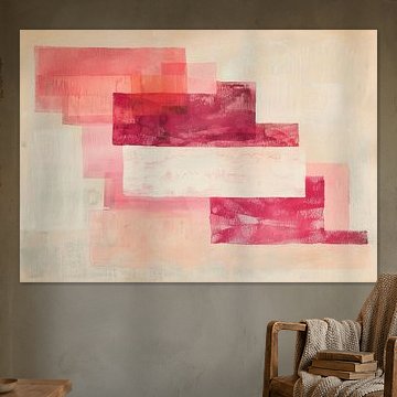 Neon kunst. Kleurrijk minimalistisch geometrisch abstract in roze, groen en beige. van Dina Dankers