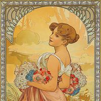 De warme taupe- en bruintinten werken mooi samen met hout, rotan of linnen accessoires in je ruimte. De zachte kleurenschakering in Lente, Alphonse Mucha (Seizoenen serie) harmoniëert perfect met eiken meubels of gevlochten manden. Zo ontstaat een warme, natuurlijke sfeer zonder dat het te druk wordt.