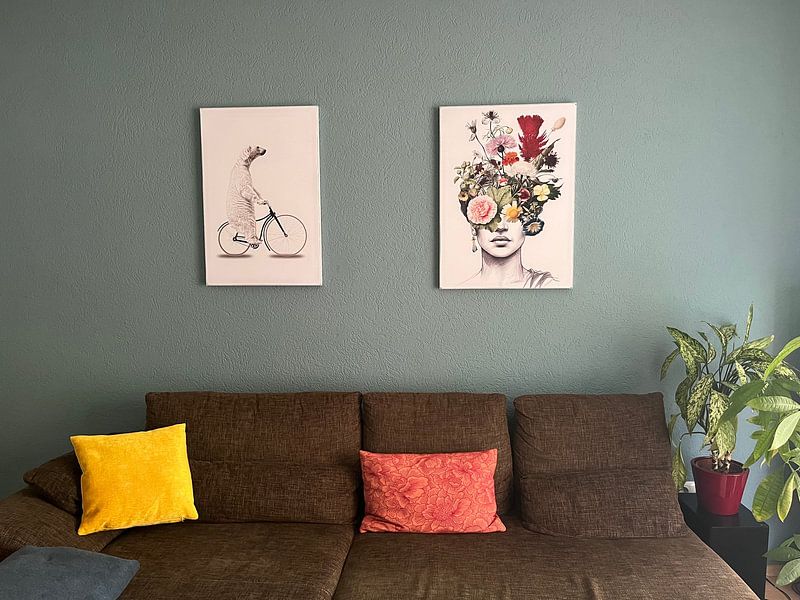 De rustige, krachtige en speelse uitstraling van Beer-kunstwerken maakt ze ideaal om te combineren met natuurlijke decoratie. Denk aan houten accessoires, groene planten of zachte textiel in aardse tinten die de kleuren uit de collectie weerspiegelen. Hang meerdere Beer-kunstwerken naast elkaar voor een samenhangende galleriewand, of combineer één opvallend werk met kleinere natuurfoto's. De bruine en beige tinten passen ook uitstekend bij woonaccessoires in olijfgroen of blauw. Zo creëer je een harmonieus geheel dat de kracht en schoonheid van de beer centraal stelt.