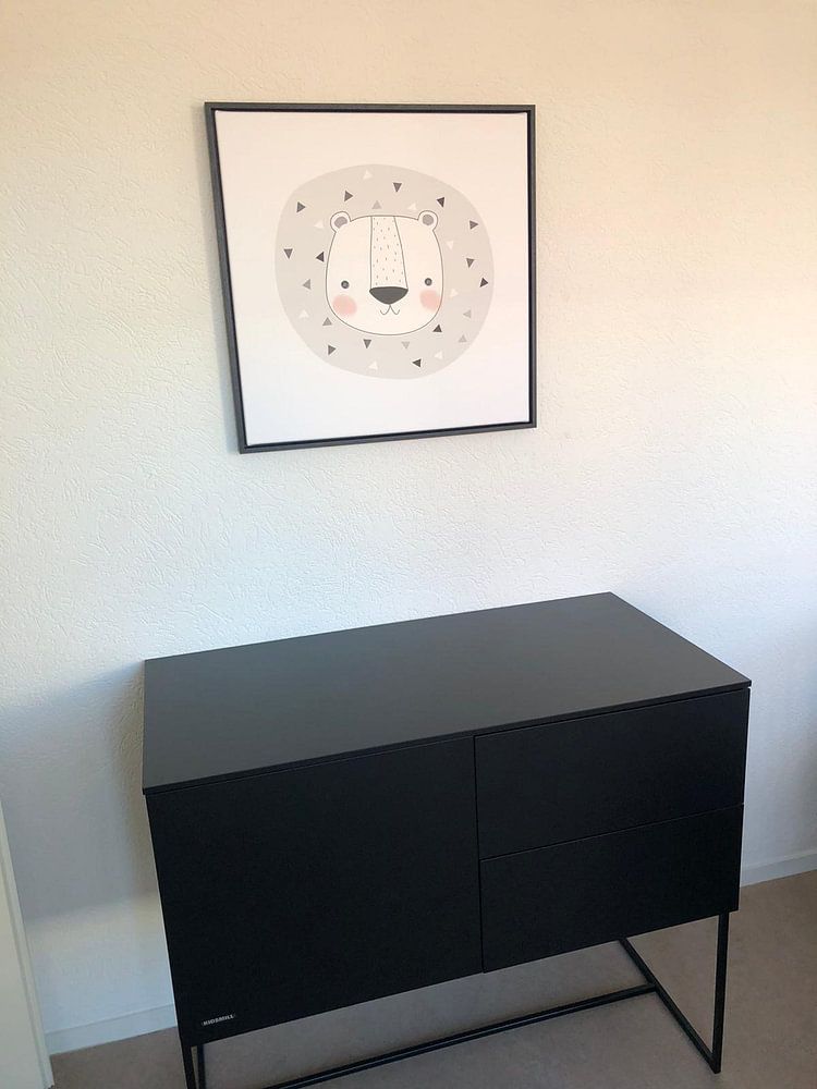 De Beer-collectie komt bijzonder goed tot zijn recht in een vierkant formaat. Dit formaat past perfect boven een dressoir in de woonkamer of aan de wand naast je bed. Door de gelijkmatige verdeling van het kader krijgt het beeld een rustige uitstraling die de sfeer van de beer versterkt. Kies je voor een liggend formaat? Dan werkt dit juist heel goed boven een bank of sideboard, waar de breedte meer ruimte krijgt.