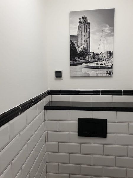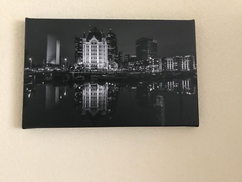 Werk met water verdient een plek waar reflecties tot hun recht komen. Plaats een kunstwerk met een rustiger karakter op ooghoogte bij een vensterbank of boven een dressoir met spiegelende oppervlakken. De avondstemming in WinterWelVaart Groningen (Hoge der A) werkt goed in zo'n setting, waar kunstlicht en daglicht elkaar afwisselen.