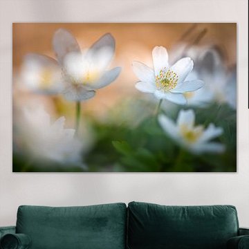 Als de winter voorbij is en de sneeuw gesmolten, steekt de bosanemoon als één van de eerste bloemen de kop op. De naam van deze prachtige witte bloem is misschien niet zo bekend, maar desalniettemin zal deze bloem als muurdecoratie zeker niet misstaan! Op canvas of andere materialen te koop voor aan je muur.