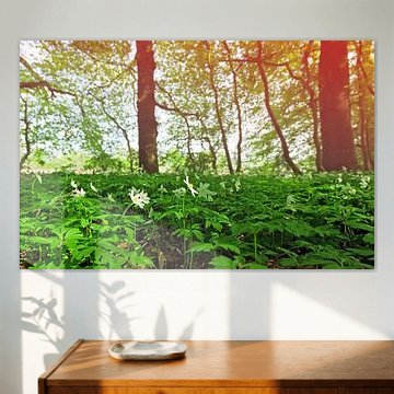 Als de winter voorbij is en de sneeuw gesmolten, steekt de bosanemoon als één van de eerste bloemen de kop op. De naam van deze prachtige witte bloem is misschien niet zo bekend, maar desalniettemin zal deze bloem als muurdecoratie zeker niet misstaan! Op canvas of andere materialen te koop voor aan je muur.