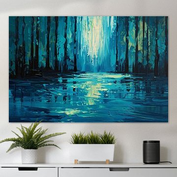 Landschappen uit het bos komen het mooist tot hun recht in een liggend formaat, vooral boven een dressoir of bank. Het horizontale formaat benadrukt de diepte en rust van boslandschappen en trekt je blik de ruimte in. Heb je een smalle wand of een ruimte tussen ramen? Kies dan voor een staand formaat om de hoogte van bomen extra te benadrukken. Vierkante formaten werken uitstekend in combinaties van meerdere werken naast elkaar, bijvoorbeeld boven een eettafel of in een hal.