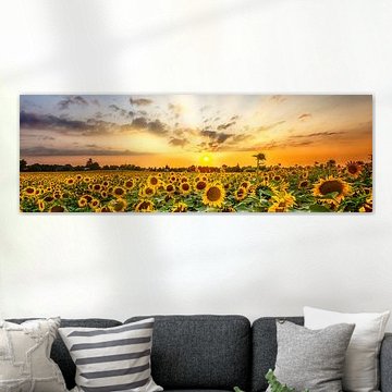 Zonnebloemveld in de zonsondergang van Melanie Viola
