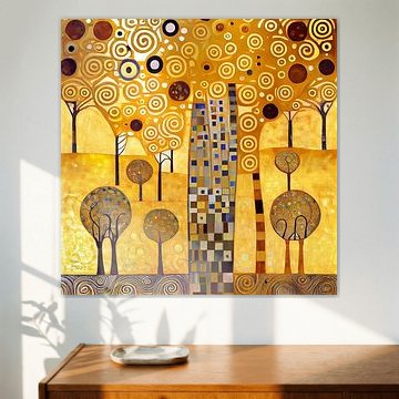 Een abstract patroon met bomen in de stijl van Gustav Klimt van Whale & Sons
