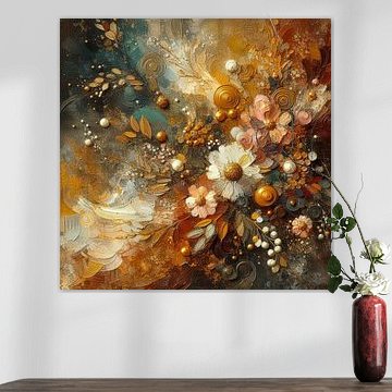 Explosie van bloemen, goud en parels van Dutch Art Works