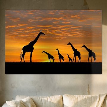 Giraffes worden herkend aan de lange nek en gevlekte huid/vacht. Wist je dat een giraf het langste dier te wereld is? Kijk voor een giraffe op canvas of als muurdecoratie eens naar de werken in onze Giraffe collectie.