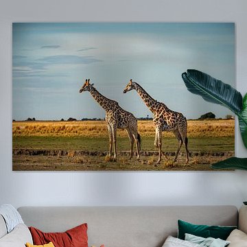 Giraffes worden herkend aan de lange nek en gevlekte huid/vacht. Wist je dat een giraf het langste dier te wereld is? Kijk voor een giraffe op canvas of als muurdecoratie eens naar de werken in onze Giraffe collectie.