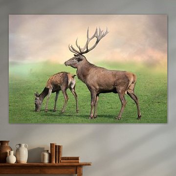 Een elegant hert aan de muur brengt een landelijke en natuurlijke sfeer in huis. Koop een hertenkop schilderij of ga voor haarscherpe wild fotografie aan de muur. Illustraties van edelherten, expressieve hert schilderijen of hyper realistische fotokunst van een hert in actie. In onze diverse herten collectie is het allemaal te vinden. Koop jouw favoriete herten kunstwerk op materiaal en formaat naar jouw keuze.