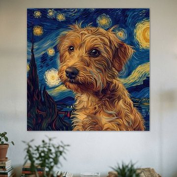 Hond sterrenhemel nacht, geïnspireerd door van Gogh van Niklas Maximilian