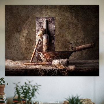 • Klantfoto: Rustiek Bloemen Stilleven | Earthy Vessel Secret van Kunst Kriebels, als ArtFrame