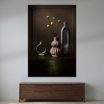 • Klantfoto: Rustiek Bloemen Stilleven | Earthy Vessel Secret van Kunst Kriebels, als ArtFrame