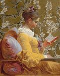 Klantfoto: Lezend meisje, Jean-Honoré Fragonard - Amandelbloesem van Digital Art Studio, als ArtFrame