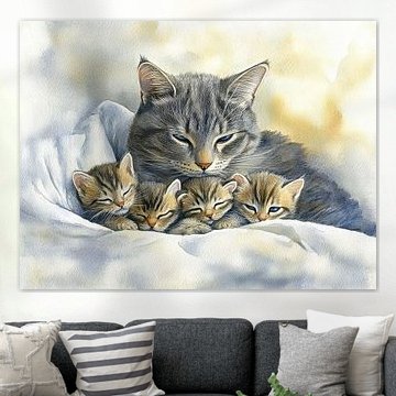 Fotokunst en schilderijen van katten voor in de woonkamer bieden een unieke manier om de liefde voor deze elegante dieren te tonen en tegelijkertijd een gezellige, uitnodigende sfeer te creëren. Van gedetailleerde close-ups die de betoverende ogen van een kat vastleggen tot speelse scènes van katten in hun dagelijkse avonturen, elke afbeelding brengt een stukje van de onafhankelijke en mysterieuze natuur van katten in huis. Deze kunstwerken, variërend van realistische weergaven tot abstracte interpretaties, bieden een breed scala aan stijlen en kleuren die passen bij elke interieurdecoratie. Het toevoegen van kattenkunst aan je woonkamer is niet alleen een eerbetoon aan de schoonheid en gratie van deze dieren, maar verrijkt ook je leefruimte met artistieke flair en persoonlijkheid.