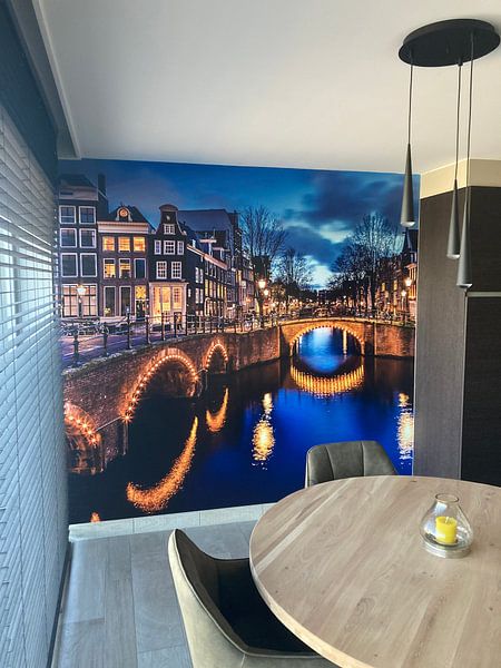 Kunstwerken met schemerlicht en verlichte gevels komen het mooist tot hun recht in een ruimte met daglicht. Hang Amsterdam Keizersgracht / Leliegracht bij een raam of in een lichte woonkamer waar het natuurlijke licht de kleuren laat verschuiven gedurende de dag, net als tijdens het blauwe uurtje.