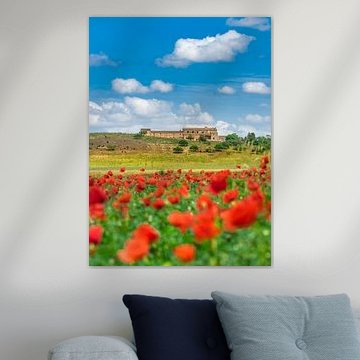 De klaproos, ook wel papaver of heksenkruid genoemd, is een prachtig rode bloem. De bloem kan zowel in het wild als in tuinen worden gespot, maar doet het ook goed als decoratie aan de muur. Een prachtig kunstwerk met een vrolijk zomerse uitstraling, waar je elke dag van kunt genieten.
