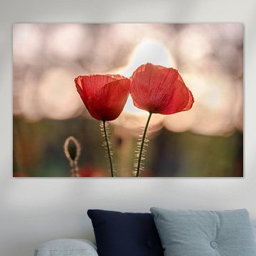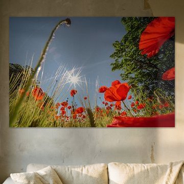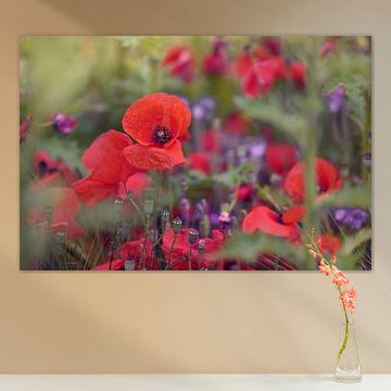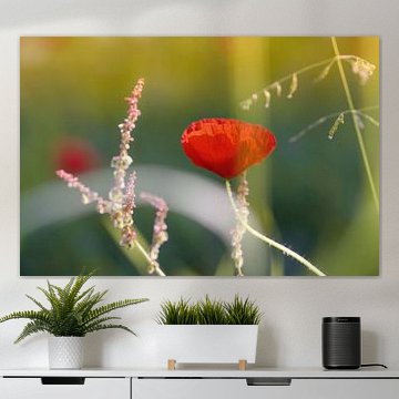 De klaproos, ook wel papaver of heksenkruid genoemd, is een prachtig rode bloem. De bloem kan zowel in het wild als in tuinen worden gespot, maar doet het ook goed als decoratie aan de muur. Een prachtig kunstwerk met een vrolijk zomerse uitstraling, waar je elke dag van kunt genieten.