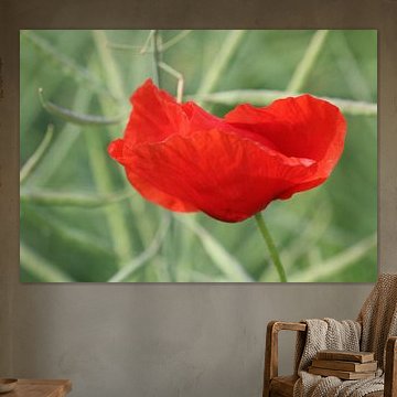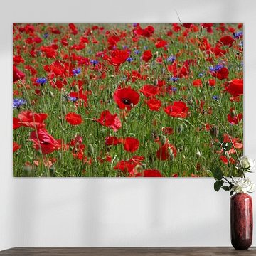 De klaproos, ook wel papaver of heksenkruid genoemd, is een prachtig rode bloem. De bloem kan zowel in het wild als in tuinen worden gespot, maar doet het ook goed als decoratie aan de muur. Een prachtig kunstwerk met een vrolijk zomerse uitstraling, waar je elke dag van kunt genieten.