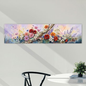 Zachte bloemenmotieven met pastelkleuren passen uitstekend in een slaapkamer waar je rust wilt creëren. Hang het kunstwerk op ooghoogte tegenover je bed, zodat je het ziet wanneer je de kamer binnenkomt. De waterverf-achtige uitstraling van Veldbloemen draagt bij aan een serene sfeer in deze intieme ruimte.