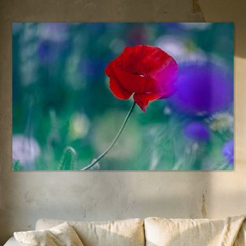De klaproos, ook wel papaver of heksenkruid genoemd, is een prachtig rode bloem. De bloem kan zowel in het wild als in tuinen worden gespot, maar doet het ook goed als decoratie aan de muur. Een prachtig kunstwerk met een vrolijk zomerse uitstraling, waar je elke dag van kunt genieten.