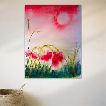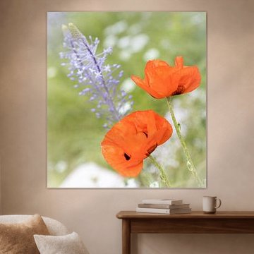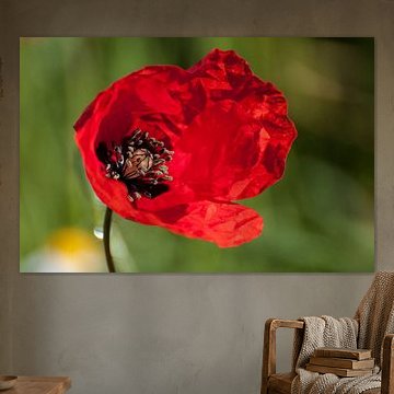 De klaproos, ook wel papaver of heksenkruid genoemd, is een prachtig rode bloem. De bloem kan zowel in het wild als in tuinen worden gespot, maar doet het ook goed als decoratie aan de muur. Een prachtig kunstwerk met een vrolijk zomerse uitstraling, waar je elke dag van kunt genieten.